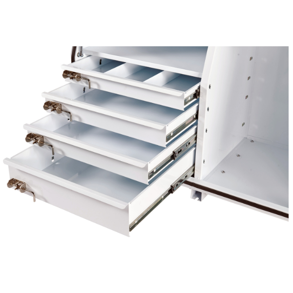 These particular mine toolboxes come with 4 x half-length drawers with heavy duty drawer slides and 2 x half-length internal shelves for storage of small tools and parts.