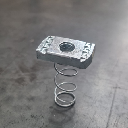 M8 channel short spring nut suits 21mmH Unistrut for fitting to external canopy roof